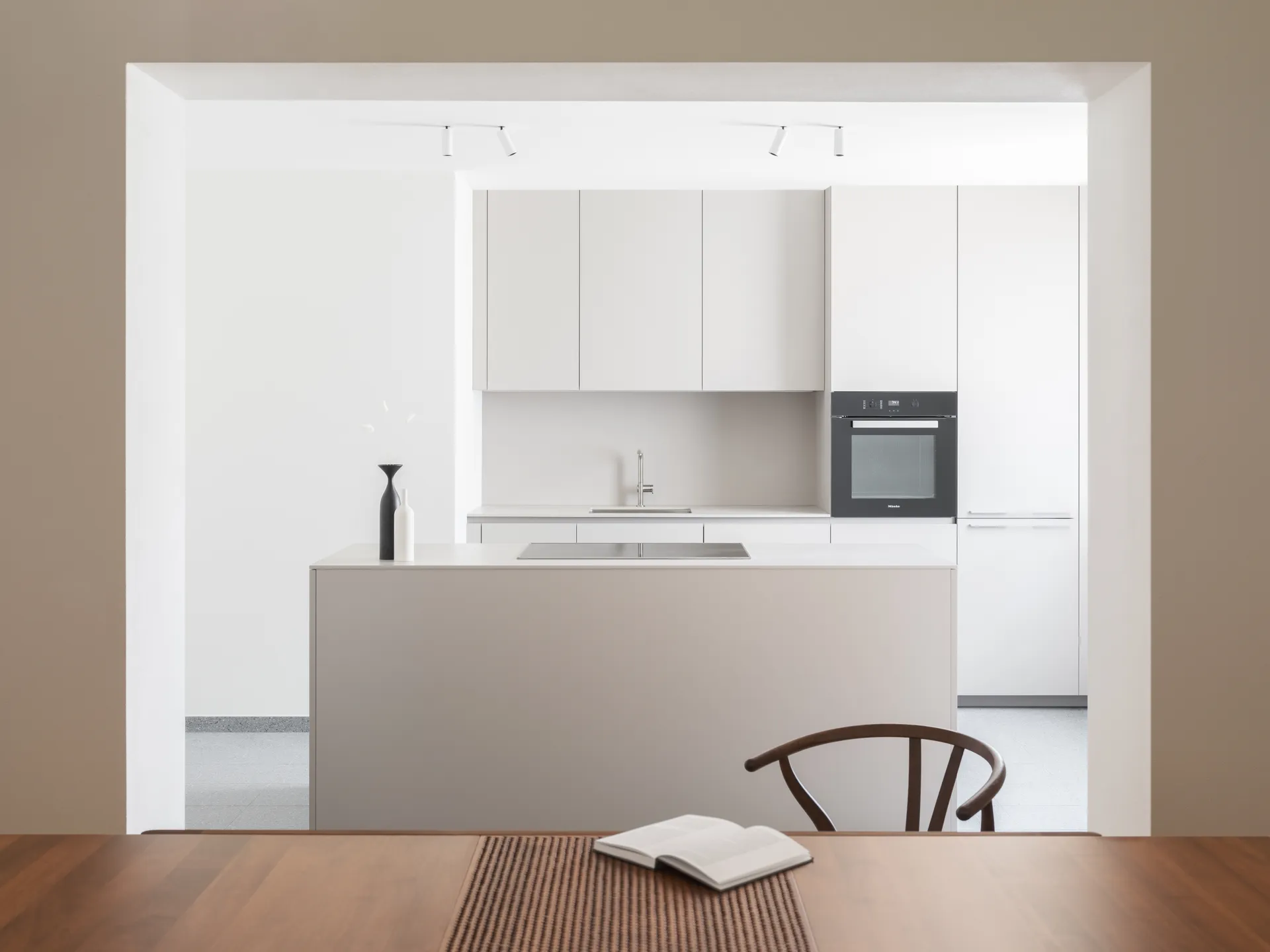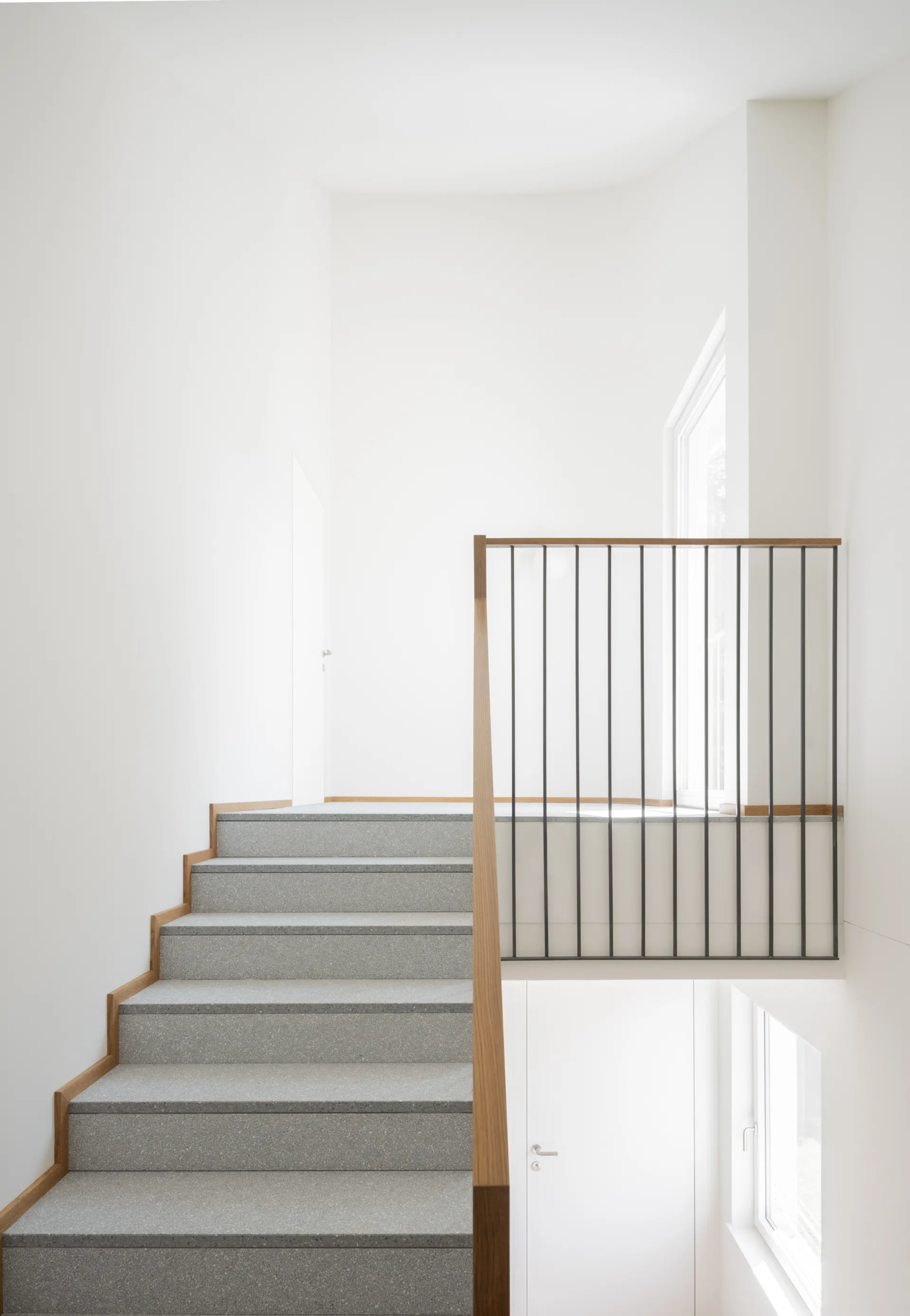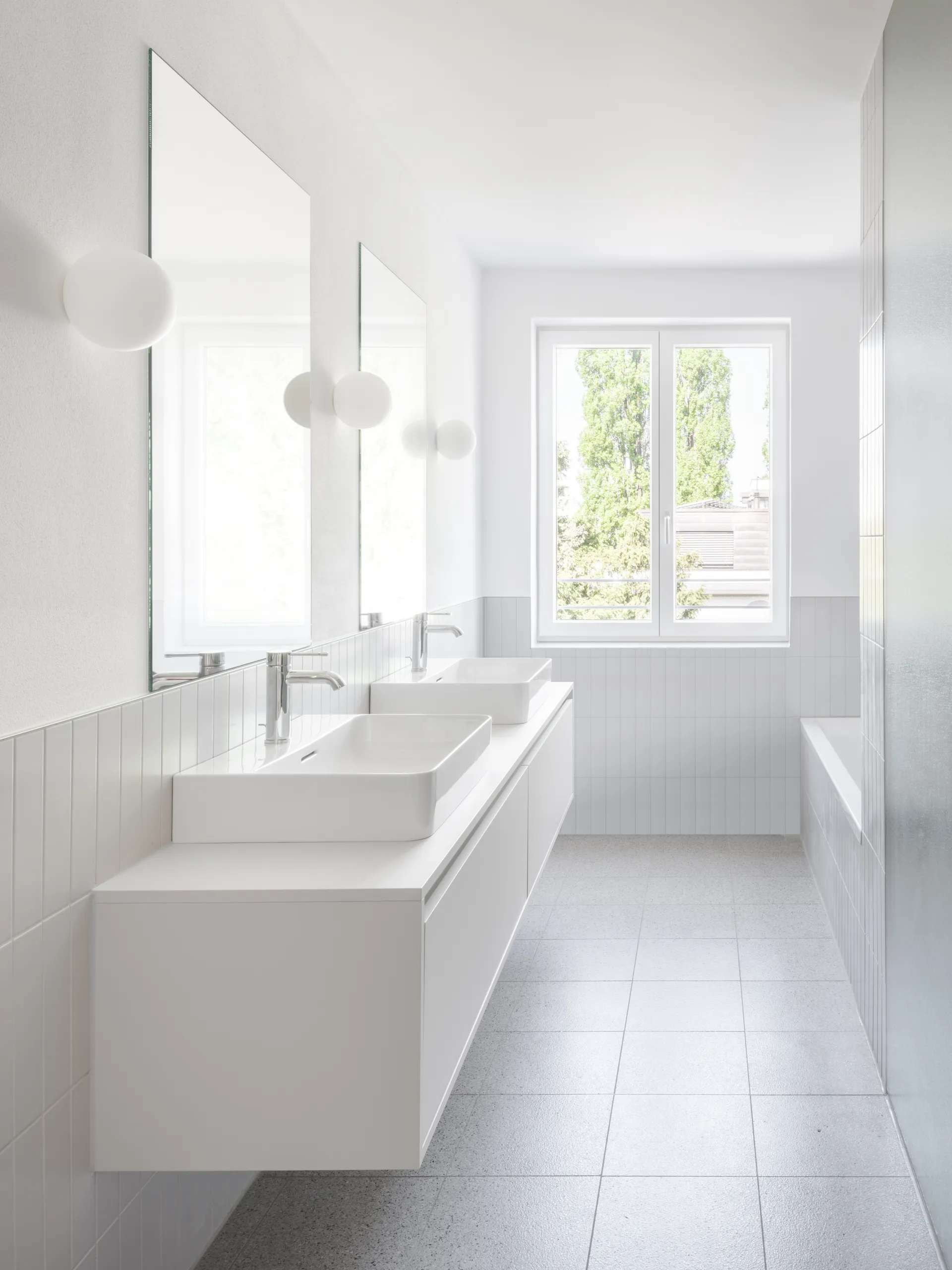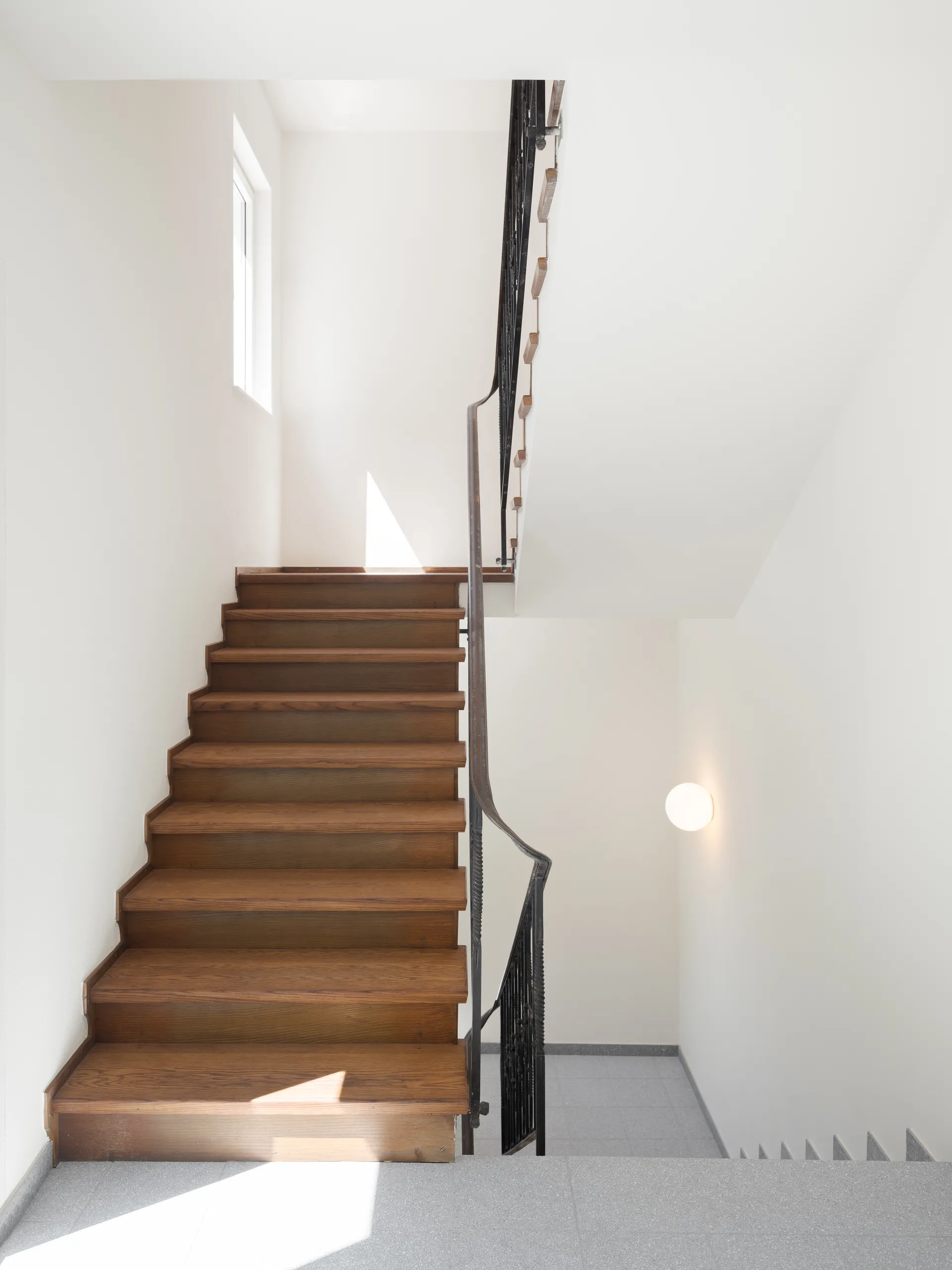 Die Altbauwohnungen behalten ihren Charme und ihre Charakteristiken. Punktuellen Maßnahmen — ein neuer Zugang, modernisierte Badezimmer und ein großzügiger Durchbruch ins Esszimmer — lassen sie den Ansprüchen der heutigen Zeit gerecht werden.