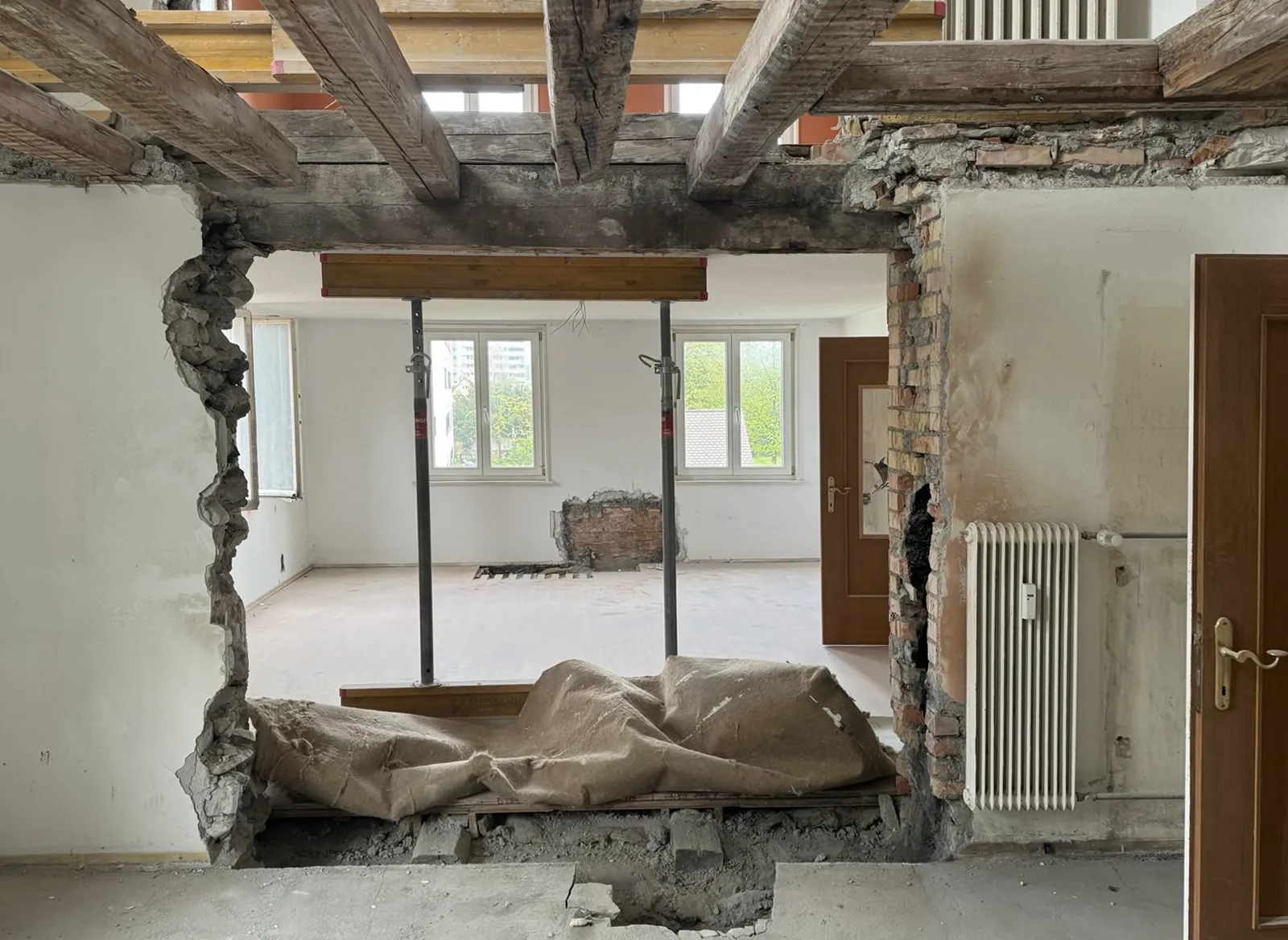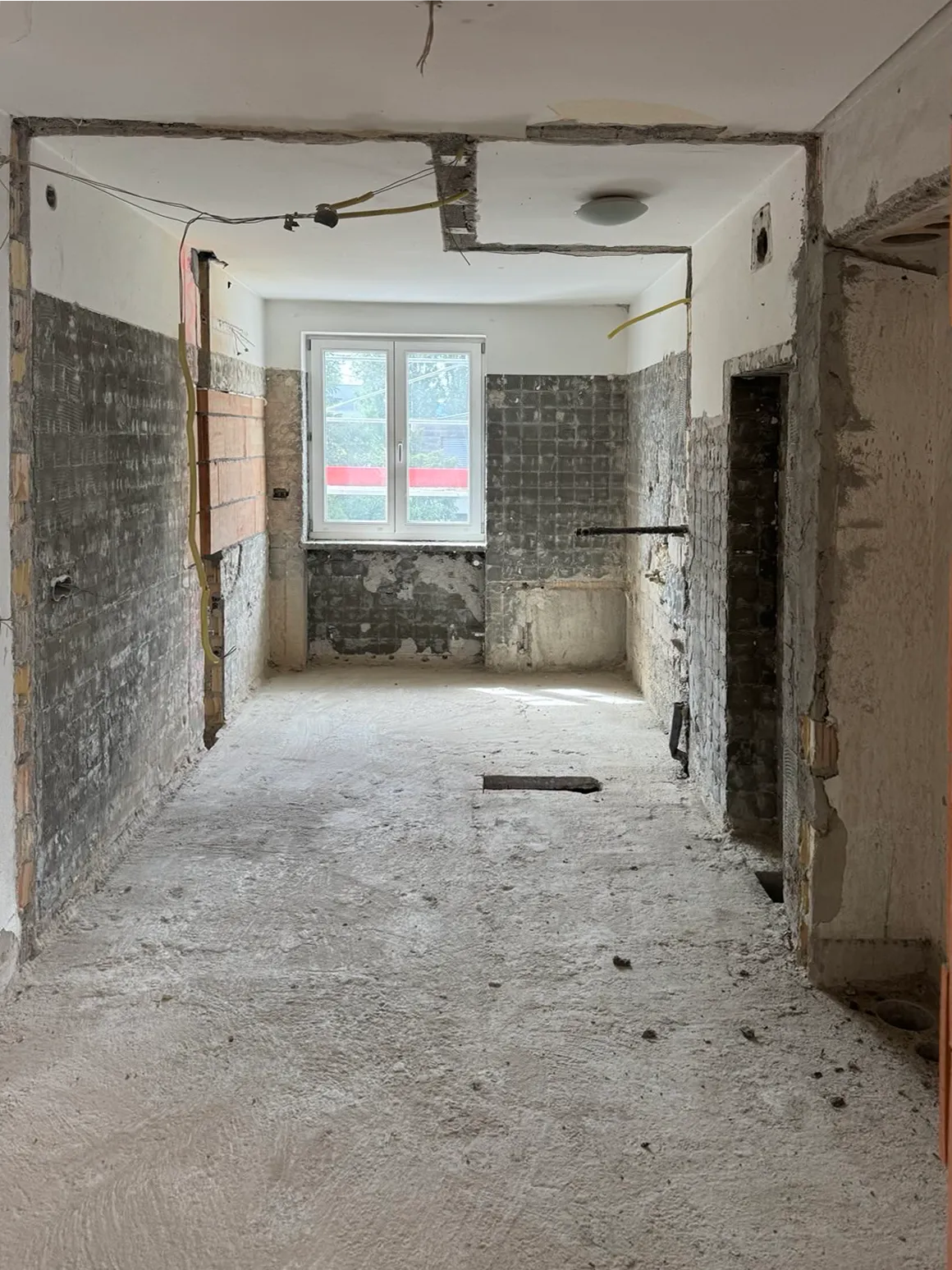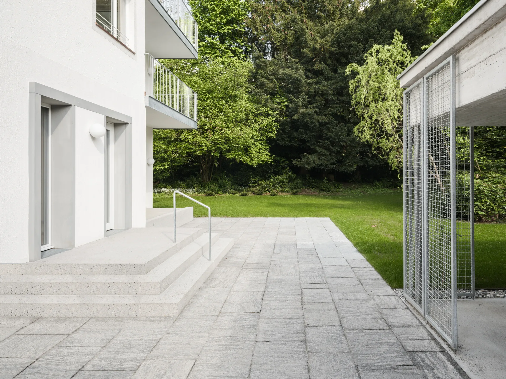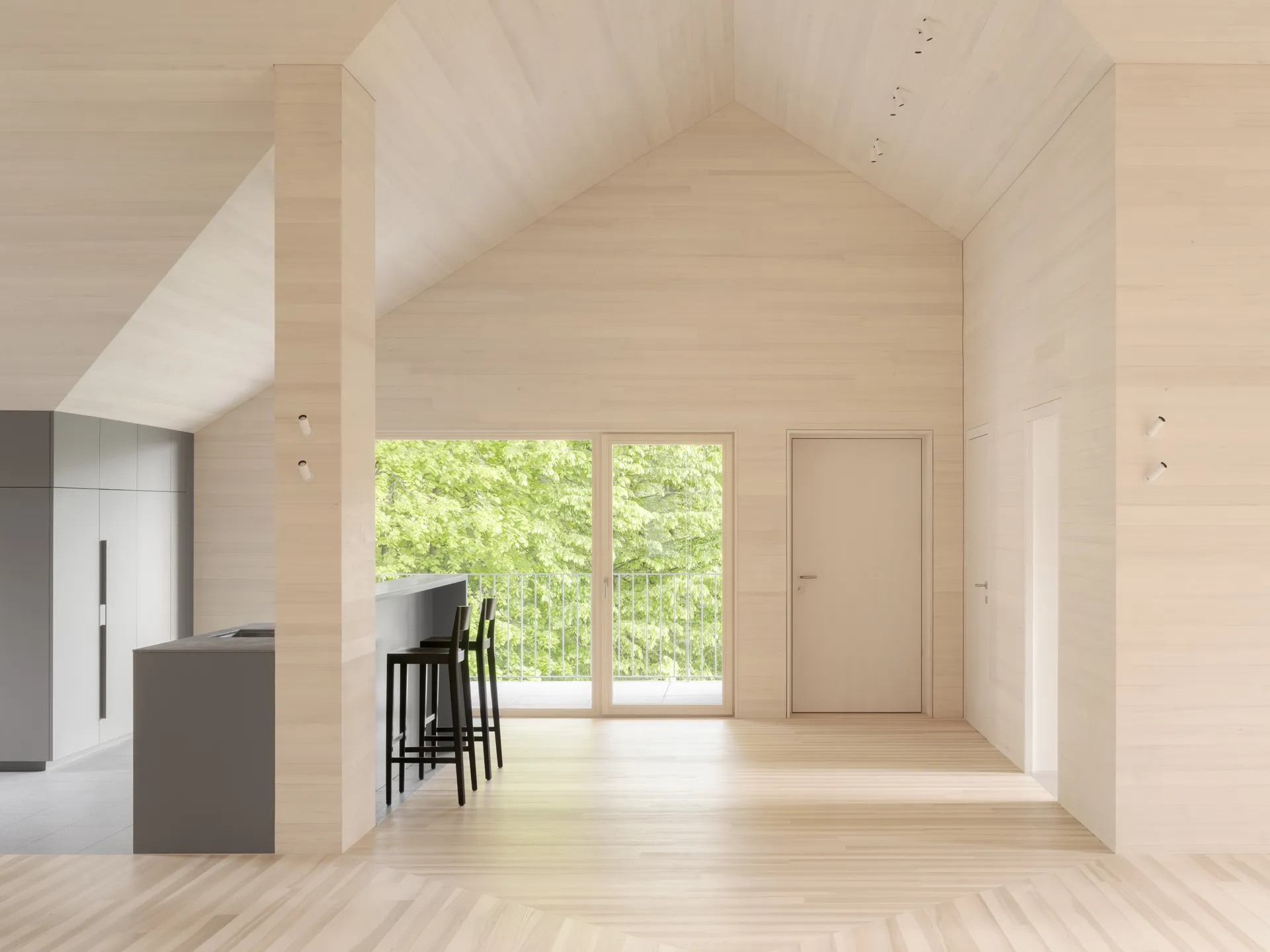 Die Altbauwohnungen behalten ihren Charme und ihre Charakteristiken. Punktuellen Maßnahmen — ein neuer Zugang, modernisierte Badezimmer und ein großzügiger Durchbruch ins Esszimmer — lassen sie den Ansprüchen der heutigen Zeit gerecht werden.