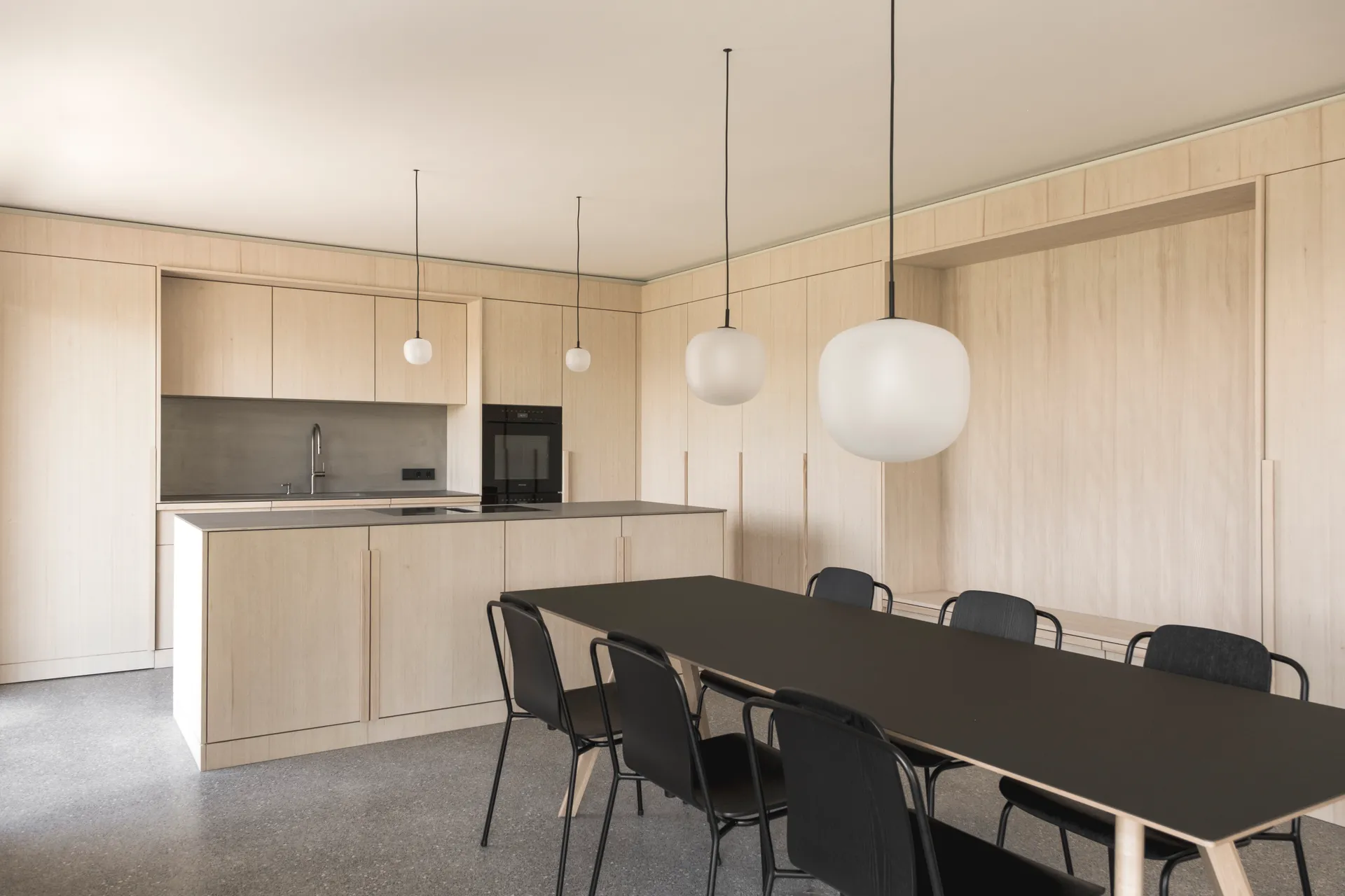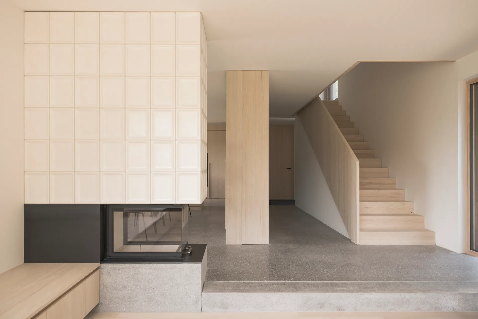 Für ein Einfamilienhaus in Hohenems wurde ein schlüssiges Materialisierungskonzept im Innenbereich und der Entwurf und die Ausformulierung der Einbaumöbel, des Ofens, der Badezimmer und der Beleuchtung gesucht.